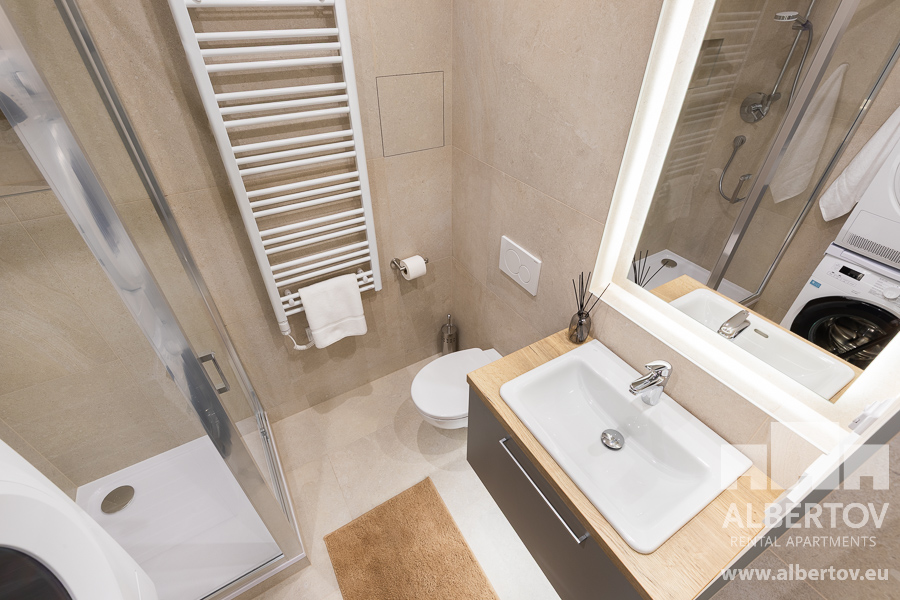 This apartment can be found on the 3rd floor of the closed residence komplex in Albertov Rental Apartments in a calm part of Prague 2. If by any chance you are driving we have a garage where you can park. After parking, as you get out of the car you will be able to take the elevator up to the apartment. You also have shopping choices as you step out of the building. Like (highly chosen by locals) restaurant in the area, Potrefená Husa and a grocery store, Lidl.