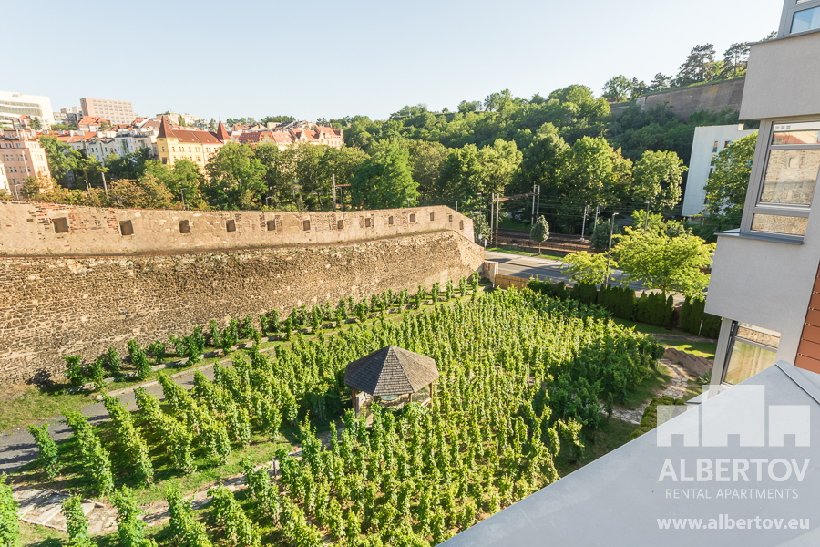 The apartment is located on the 5th floor of the closed residential complex Albertov Rental Apartments, in a quiet neighborhood near the city center. There is a possibility of a calm parking garage under the complex, an elevator will directly take you to your apartment. Shopping options like a renowned restaurant or a grocery store are in the area.