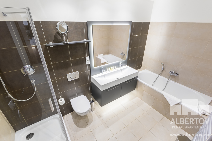 This apartment is located on the 6th floor of a closed residential complex of six rental buildings in a quiet part of Prague near the center.