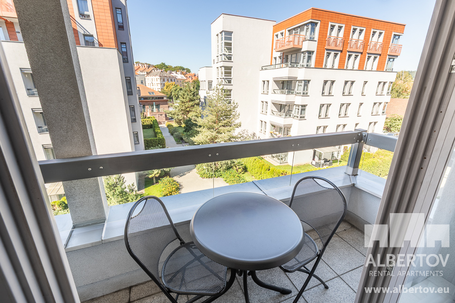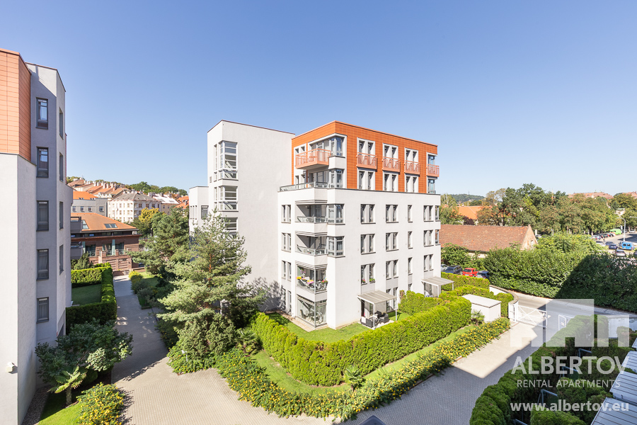 This fully furnished apartment with a balcony is located on the 4th floor of building of the unique residential complex Albertov Rental Apartments, 8 minutes by tram from Wenceslas Square, in a quiet part of Prague.